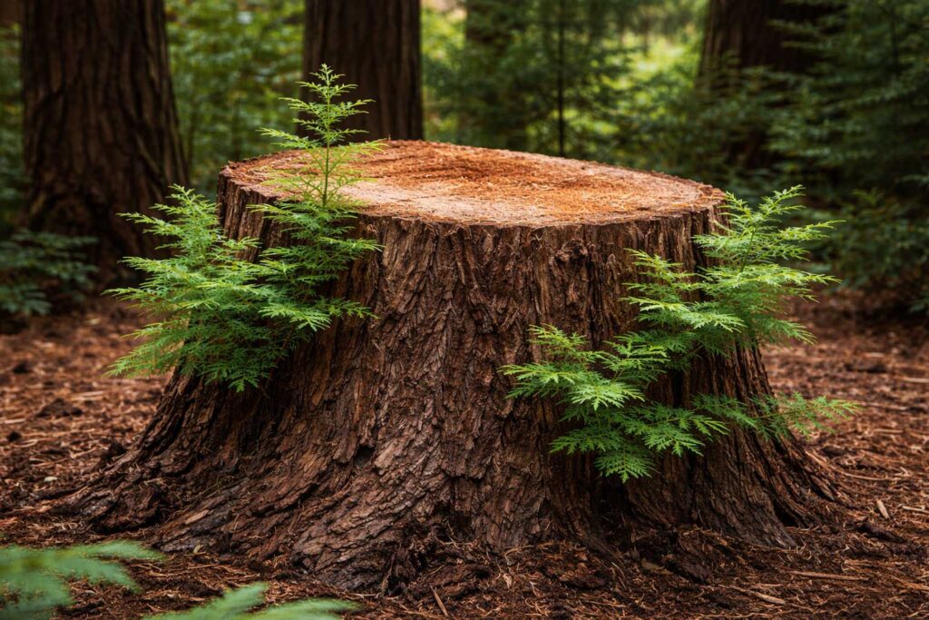 In contrast, some exotic species regrow from the stump after cutting. The most successful demonstration of this in NZ is the Redwood forest in Rotorua. The root system remains alive and actively holds the land.